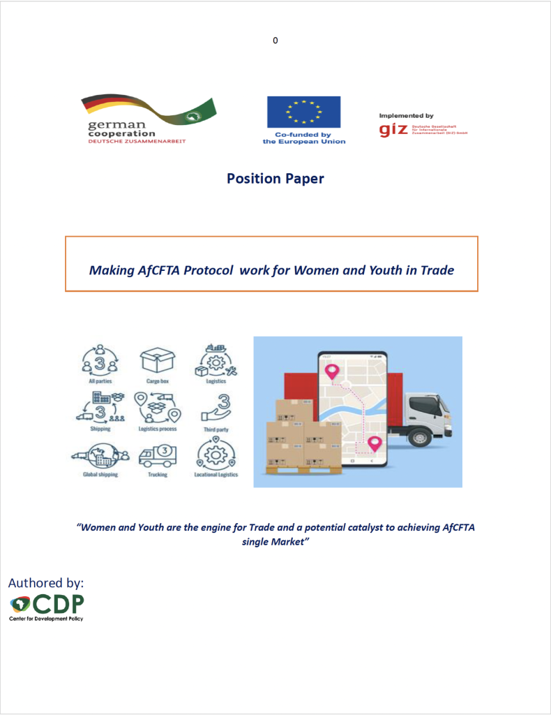 This position paper advances a critical impetus for integrating the needs and potentials of women and youth in trade for Rwanda team of negotiation during upcoming negotiations for the women and youth Protocol under AfCFTA Phase II&III. Women and youth-led businesses in Africa, and Rwanda in particular play a significant role in economic transformation and poverty reduction.
