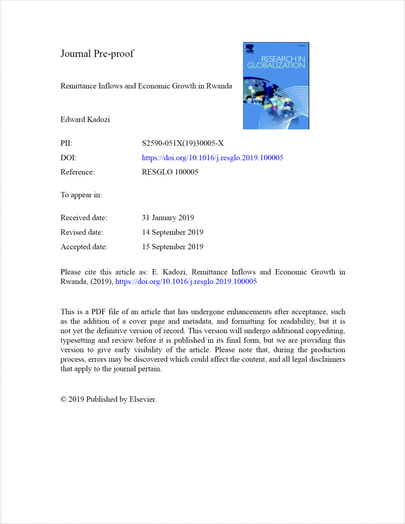 Remittance Inflows and Economic Growth in Rwanda