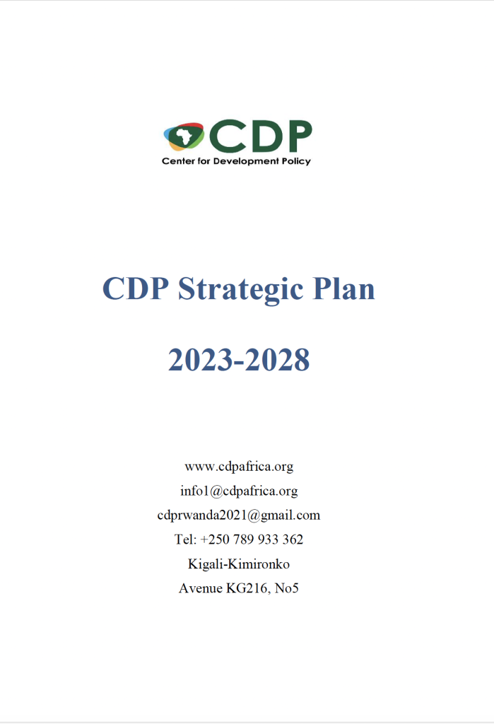 The Center for Development Policy (CDP) is a Pan-African and non-partisan think tank headquartered in Rwanda and registered with the Rwanda Governance Board (RGB). The Centre exists to contribute to the development of African countries through policy analysis and capacity strengthening. CDP prioritizes indigenous evidence-based development solutions and promotes local and empirically tested interventions that address the real needs of Africa’s population and contribute to the continent’s inclusive development.